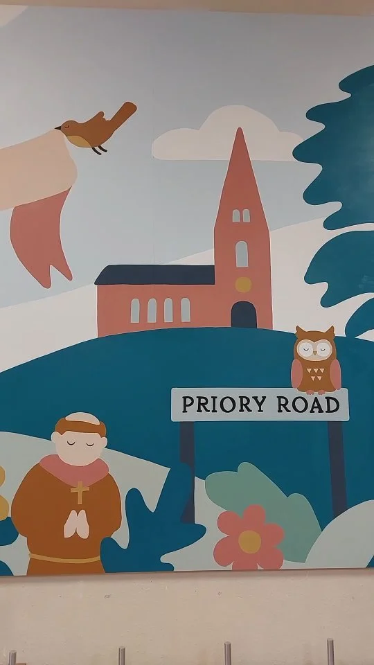 We are a team of two designers (Erin + Hattie) based in Gloucester with a mission to transform spaces both inside and out. We design and paint murals for schools, community spaces, offices and more. We have now painted over 50 murals for a variety of clients across the UK, including Cheltenham Literature Festival and ASK Italian.