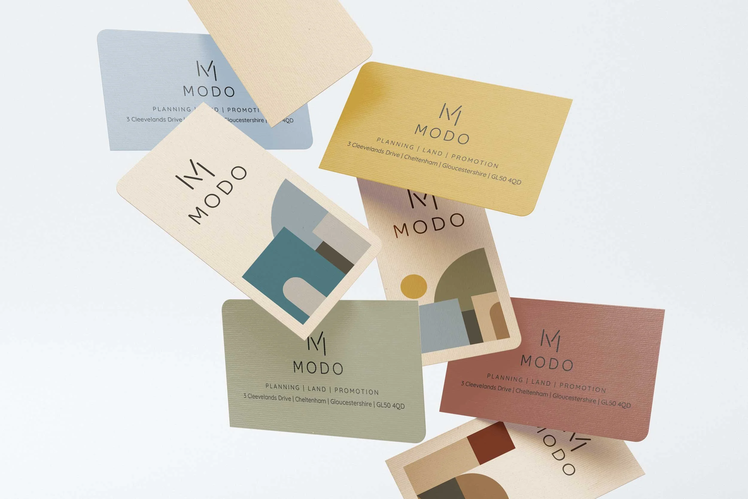 Cheltenham-based planning, land and promotion business, Modo, asked Mint + Mabel to to develop a cohesive brand identity, including a contemporary logo, custom brand patterns, and a refined stationery suite.